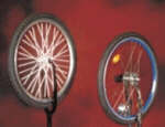 | Die reflektierenden Speichen zur Einsparung der sonst erforderlichen Reflektoren wurde zur Präsentation mit einer selbstgemischten Farbe als Prototypenlösung vorgestellt. Aus einer ersten Idee - einer wärmespeichernden Tasse - entwickelte sich eine Temperaturanzeige mit LEDs für die Tasse und schließlich eine digitale Temperaturanzeige für Thermoskannen. | |