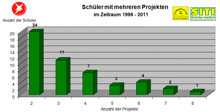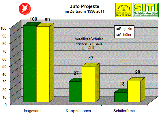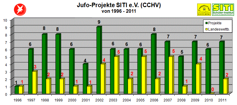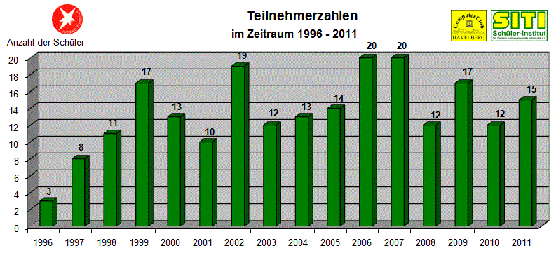 | Seit 1996 (noch als ComputerClub Havelberg) wird eine Statistik zur Teilnahme am Wettbewerb "Jugend forscht" geführt. |