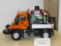 Bei den Brennstoffzelle-Fahrzeugen musste ein mit einer Brennstoffzelle angetriebener Unimog zunächst eine Schaumpolystyrol-Strecke frei- schieben und dann eine Slalom-Strecke durchfahren. |