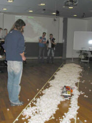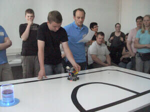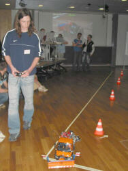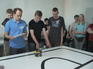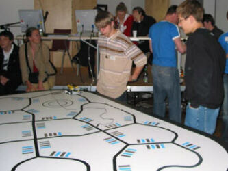Die Aufgabe bei den Autonomen Robotern bestand darin, einen Parcour abzufahren, wobei die Strich-Codes die Richtung und bestimmte Aufgaben symbolisierten. |