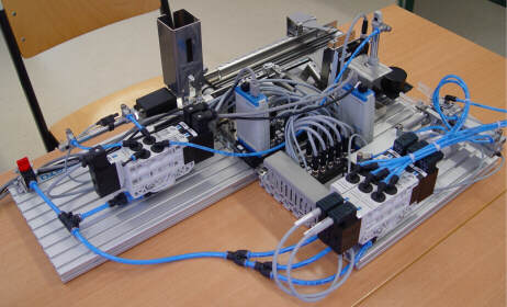 Automatisierungsanlage aus den drei kombinierten FESTO-Modulen |