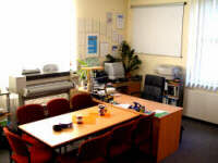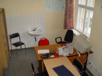 Als Besprechnungsraum, für Ver- waltungsarbeiten (Buchführung, Recherchen) und als Materiallager steht den Schülerfirmen ein kleiner Büroraum zur Verfügung. Dieser kann also auch in den Freistunden effektiv genutzt werden. |