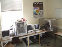 | Raum 0.1 SITI - Büro Das Büro des Leiters ist Anlaufpunkt für Gäste und Besucher des Schüler-Institutes. Es dient gleichzeitig als Besprechnungsraum für den ErfinderClub, das Junggründerzentrum und das Technik-Kompetenzzentrum. Außerdem ist es ein kleines Computer- und Technikmuseum. Neben zahlreichen noch funktionierenden 8-bit-Rechnern, werden hier auch technische Eigenbau-Geräte gezeigt, sowie Ergebnisse des ErfinderClubs (z.B. "Der fliegende Besen"). |