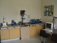 Raum 0.3 Maschinen-Werkstatt Die Maschinen-Ausstattung umfasst zwei CNC-Maschinen, eine Schleifmaschine, eine Dekupiersäge, eine Ständerbohrmaschine, eine Kreissäge und eine Drehbank. Damit entstehen hier zahlreiche technische Projekte. Außerdem ist die Werkstatt Produktionsstätte der Schülerfirmen, der "Formel future SGmbH"und der "RelaxTools SAG". |