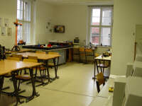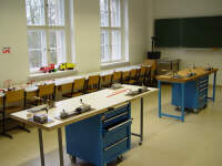 Raum 0.1 : Büro des Leiters (es dient gleichzeitig als Besprechnungsraum und ist ein kleines Computermuseum) Raum 0.2 : Computerkabinett (in gemeinsamer Nutzung mit der Kreisvolkshochschule Stendal) Raum 0.3 : Maschinen-Werkstatt (zugleich Produktionsstätte der Schülerfirmen Formel future u. RelaxTools) Raum 0.4 : Computer-Werkstatt / Elektronik-Werkstatt (hier entstehen zahlreiche Jugend-forscht-Projekte) Raum 0.5 : Büro der Schülerfirmen (für Besprechnungen und Verwaltung) Raum 0.6 : Multimedia (kleiner Computerraum für Multimedia-Anwendungen und Web-Design) Raum 0.7 : Studio (Produktionsstätte der Schülerfirma mcubic / Bild- Film- und Tonbearbeitung) In der ersten Etage befinden sich folgende Räume: Raum 1.2 : UMT-Werkstatt (Raum für Projekte "Technik erleben" als Angebot für Schulklassen) Raum 1.3 : Roboterbaulabor / Lego-Werkstatt (Raum für alle Automatisierungsaufgaben) |