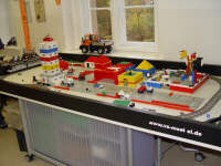 Raum 1.3 Roboterbaulabor / Lego-Werkstatt In den letzten Jahren entstanden zahlreiche Technik-Projekte, die Steuerung und Automatisierung beinhalten. Außerdem beteiligten sich SITI-Mitglieder an Roboterwettbewerben. Das RCX-Modul von Lego-Mindstorms wurde in verschiedenen Systemen als autonome Steuerung integriert. Als Einführung von Schülern der 5. und 6. Klasse wird jedes Jahr eine neue Lego-Stadt geplant und gebaut. Inzwischen hat auch das NXT-Modul von Lego Einzug gehalten. Weiterhin werden Elemente von Fischertechnik und eine Festo-Anlage eingesetzt. Damit wird der Raum für vielfältige Aufgaben genutzt. |