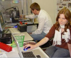 | Das Schüler-Institut verfügte inzwischen über eine 3D-CNC-Fräsmaschine, die in die Überlegungen einbezogen wurde. So entstand die Idee, Türschilder nach Kundenwunsch mit der CNC-Fräse zu beschriften. Hierzu wurde der Kontakt zu einer Havelberger Firma aufgenommen, bei der man die Türschilder preiswert beziehen wollte. Die Vereinbarung kam zustande, doch die Produktion brachte nicht die gewünschte Qualität. | ||