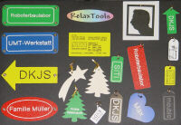 | Im September hatte das Schüler-Institut die Möglichkeit mit Schülerfirmen und Technik-Projekten auf der Bildungsmesse "Perspektiven" / Kickstart aufzutreten. RelaxTools beteiligte sich mit einem Stand an dem die CNC-Produktion life vorgeführt wurde. Es wurden sowohl Schlüsselanhänger aus PVC gefräst als auch demonstriert, wie man Kopfprofile als "Moderne Scherenschnitte" aus PVC erhält. Ein Interessent hatte einen besonderen Wunsch: Er wollte seine Visitenkarte in PVC gefräst haben. Eine echte Herausforderung, die zunächst mit viel Aufwand während der freien Zeit auf der Messe bearbeitet wurde. Zu hause wurde schließlich eine Software für derartige Wünsche entwickelt, sodass die Schilderproduktion in Zukunft deutlich vereinfacht realisiert werden konnte. Vor Weihnachten gab es dann noch einen schönen Auftrag, der die Produktion von 100 Weihnachtsbaumanhänger, aus Sperrholz gefräst, beinhaltete. |