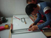 Hierzu wurde eine Idee der Schülerfirma ICO aus 2004 aufgegriffen und erweitert. Es sollte eine, auf beliebige Brillenfassungen aufsteckbare Sonnenbrillenfassung entwickelt werden. Für das "Brillentandem" wurden zunächst Skizzen angefertigt, dann Pappmodelle und schließlich eine Plastikfassung gebaut. Hierbei nutzte das SCI-Team die Dienstleistung der Schülerfirma "RelaxTools SAG", die den Fassungsentwurf mit CAD kostruierte und mit ihrer CNC-Maschine fertigte. Die Haltevorrichtung wurde dann jedoch wieder von den Mädchen in Handarbeit gefertigt. Mit dieser Lösung wurden die vier Mädchen in den ErfinderClub Havelberg aufgenommen. |