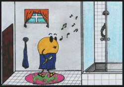 Unser SCI-Eddy unter der Dusche: Das Duschgel ist soo kalt - oh Schreck! |