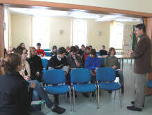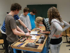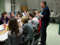 | Das Fazit: Trotz des umfangreichen Unterrichtspensums und dem Lernen für die Zertifizierungsklausur bewerteten die Teilnehmern die Woche fast auschließlich positiv. Auch das Feedback der Referenten bescheinigte den Teilnhmern viel Engagement und Ehrgeiz. Für alle Beteiligten war damit die Schüler-Studien-Woche ein Gewinn und ein voller Erfolg. Auch die Lehrerfortbildungsveranstaltung am letzten Tag hat sich bewährt. So konnten die teilnehmenden Lehrer nicht nur das landesoffene Angebot persönlich kennenlernen, sie hatten zugleich die Möglichkeit, die an der Studienwoche teilnehmenden Schüler ihrer Schule bei der Abschlusspräsentation live zu erleben und konnten sich von den Ergebnissen nur einer Woche "Ministudium" überzeugen. Viele Eltern waren auch schon etwas früher zur "Abhole" ihrer Kinder angereist, um an der Abschlussveranstaltung teilnehmen zu können. Hier noch einige Bilder aus der Woche: |