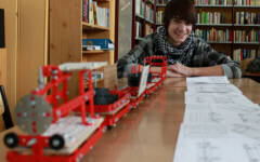 | Der Studiengang "Technik und Automatisierung" mit den Studienrichtungen "Konstruktion"und "Automatisierungstechnik" Folgende Themenschwerpunkte wurden vermittelt: - Konstruktionslehre - CAD mit Solid Edge - Produktdesign - Projektplanung - Schutzrechte - Kreativitätstechniken - Zeitmangement - Rhetorik und Präsentation Für die Automatisierungstechniker wurden nur Grundlagen von CAD, dafür jedoch zusätzlich SPS-Programmierung vermittelt. Im Technik-Studiengang hatten sich 17 Schüler angemeldet, wovon 10 Teilnehmer sich für die Studienrichtung "Konstruktion" und 7 Schüler für die "Automatisierungtechnik einschrieben. Für die Konstrukteure standen mehrere Aufgaben für die Arbeit in kleinen Ingenieurteams zur Auswahl: - Konstruktion und Fertigung eines Mini-Formel1-Rennwagens, - die Konstruktion einer Schaubox für Mini-F1-Rennwagen - die Entwicklung eines Stabilbaukastens für Grundschüler. Die Automatisierer hatten die Aufgabe, ein bestehendes FESTO-Transortanlagen-Modell durch ein Drehtellermodul zu ergänzen und in Teamarbeit einen neuen Transportprozess zu entwickeln und zu programmieren. | ||