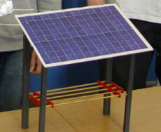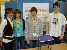 | Auch die Schülerfirma "SolarTec" befasste sich mit dem Thema regenerative Energien. Ein Grill, der über ein Solardach betrieben und damit elektrisch, umweltschonend das Grillgut schonend zubereitet, ist ein interessantes und zugleich überzeugendes Konzept. Mit Unterstützung von Teilnehmern des Technik-Studienganges wurde ein Modell zur Präsentation auf der Schülerfirmen- und Technikmesse am Abschlusstag gebaut. | ||