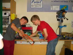 Wir gründen eine Schülerfirma mit einem eigenen Produkt Erstmals war der Studiengang mit nur 8 "Studenten" deutlich geringer besetzt als der Maschinenbau-Studiengang. Dennoch stand das komplette Programm an Lehrveranstaltungen zur Verfügung und dementsprechend hoch war die Motivation bei den Schülern. |