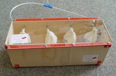 | Beim Aufbau des Funktionsmodells wurden verschiedene Halbzeuge verwendet und durch den Einsatz einer Acrylplatte als Deckel die Demonstration der mit Druckluft zu füllenden Luftballons möglich. | ||