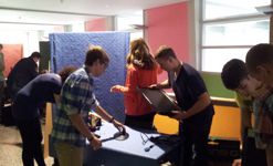 Durch die bewährte Mischung der Teams aus verschiedenen Schulen und Studiengängen entstanden interessante Protptypen für die Abschlusspräsentation. Doch zunächst mussten von den Schülern insgesamt 56 Unterrichtsstunden in 6 Tagen bewältigt werden, die von 15 Referenten erteilt wurden. Neben dem Umfang des Unterrichtspensum war jedoch wieder eine große Vielfalt an Wahlpflichtveranstaltungen für beide Studiengänge auch durch einige neue Themen gegeben. | |