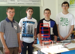 Eine interessante Lösung für die Sicherung des Ladegutes in einem Container entwickelten Daniel,Jürgen, Dennis und Pascal. Der nicht genutzte Laderaum wird mit Hilfe von Ballons ausgefüllt, die mit Luft gefüllt werden, sodass das Ladegut gut gesichert auf die Reise gehen kann. Die Idee wurde in einem Funktionsmodell visualisiert. | ![]() |