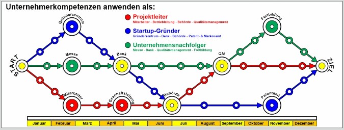 Im Anschluss erfolgt ein Planspiel in dem drei Teams als Projektleiter, als StartUp-Gründer bzw. als Unternehmensnachfolger konrete Aufgaben erfüllen und Stationen besuchen müssen. Dieser Teil einschließlich der Abschlusspräsentation der Ergenisse und Siegerehrung erfordert weitere ca. 120 Minuten.