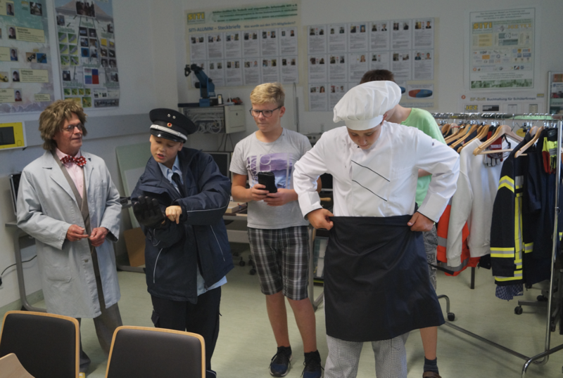 Dabei hilft ihm unser Roboter SIT, der dem Professor per Video-Konferenz Hinweise gibt und die Bedeutung der Berufsorientierung erklärt.