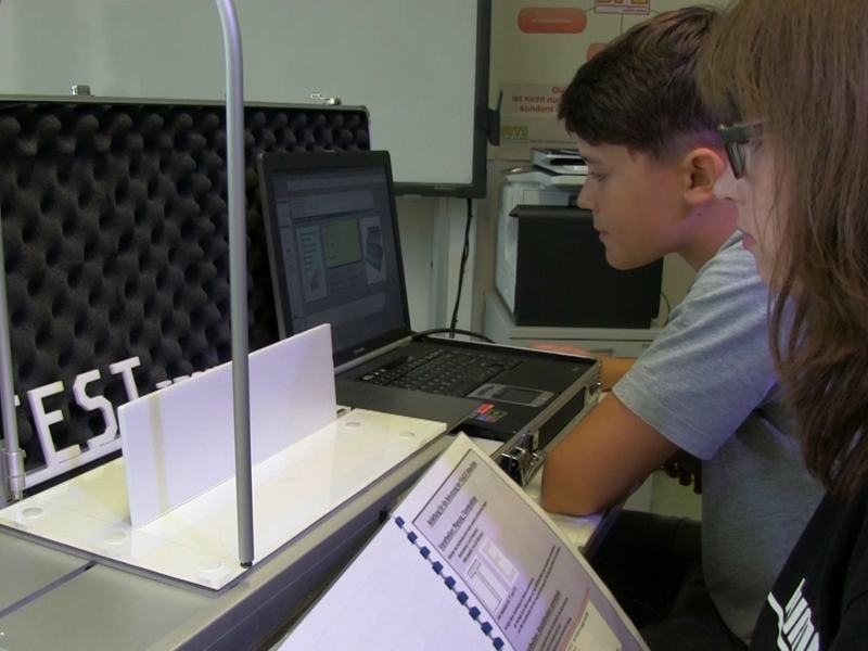 An dieser Station ist präzises Arbeiten nach Anleitungen zum Bau und der Programmierung des Fahrzeuges sowie Kreativität für technische Lösungen erforderlich.