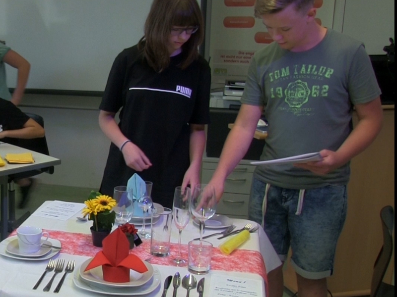 Service und Freundlichkeit sind wichtige Aspekte in der Gastronomie. Unter Einbeziehung eigener Erfahrungen und einem Video und Vorlagen wird ein Tisch für ein vorgegebenes Menü eingedeckt. Außerdem sind verschiedene Serviettenfaltttechniken anzuwenden.
