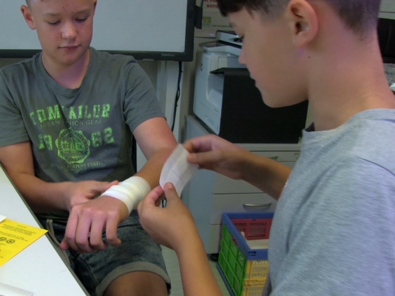 Als Rettungssanitäter muss man fit sein und unter körperlicher Anstrengung klug handeln, um Leben zu retten. Dies wird am „Heißen Draht – Herz-Frequenz-Kurve“ getestet. Weiter gilt es verschiedene Wunden zu versorgen und mittels einer Checkliste festzustellen, wodurch sich Erste-Hilfe-Kästen für Büro und für Auto unterscheiden.