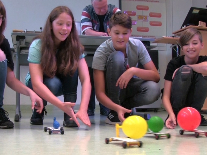 Mittels handwerklichen Fertigkeiten, wie Bohren, Fräsen, Sägen, Schrauben und Biegen sollen aus Halbzeugen ein Auto mit Luftballonantrieb, eine Tierfigur und ein Strichmännchen gebaut werden.