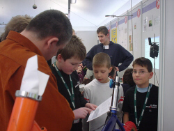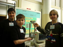 Erwin und Sebastian mit ihrem Demonstrationsexperiment Brennstoffzelle die erfolgreichesten Teilnehmer des SITI 2005 mit einem 2. Platz Jugend forscht und Sonderpreis des Elelktronikverbandes |