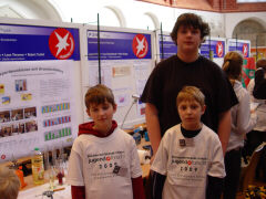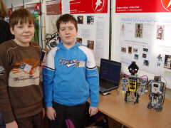 Für Stephan und Gilian war die Teilname am Landeswettbewerb ein tolles Erlebnis und ihre Roboter sorgten für viel Interesse bei den Besuchern. |