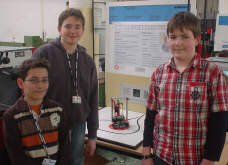 Auch der nun schon dritte Auftrag der TCS TürControlSysteme AG fand seine Grundlage im Roboterbaulabor. Diesmal stammte die Idee allerdings aus dem Schüler-Insitut. Die Grundidee: An Messeständen, an denen sich etwas bewegt, bleiben Besucher eher stehen, weil Bewegung die Aufmerksamkeit auf sich zieht. So soll ein Fahrroboter eine immer wiederkehrende Bewegung vor dem Tastenfeld einer Türkommunikationsanlage von TCS ausführen. Zusätzlich bedient der Roboter das Tastenfeld. Die Anlage ist so programmiert, dass jeder eingegebene Tastencode ein bestimmtes Wort im Display anzeigt. Auf diese Weise können durch den Roboter Botschaften übermittelt werden. Für dieses Projekt finanzierte TCS ein neuartiges Baukastensystem "qfix", das die Verwendung von Industriesensoren zulässt und in C programmierbar ist. Drei Mitglieder des Schüler-Institutes aus der 7.Klasse bearbeiteten die Aufgabe erfolgreich. Neben dem Jugend-forscht-Erfolg (Sonderpreis auf Landesebene) hatten sie direkten Kontakt zu Firmenmitarbeitern und erhielten eine Einweisung in die Programmierung des TCS-BUS. Dieser frühzeite Kontakt mit praxisnahen Themen und Handlungsweisen ist eine der wesentlichen Zielsetzungen des Schüler-Institutes. |